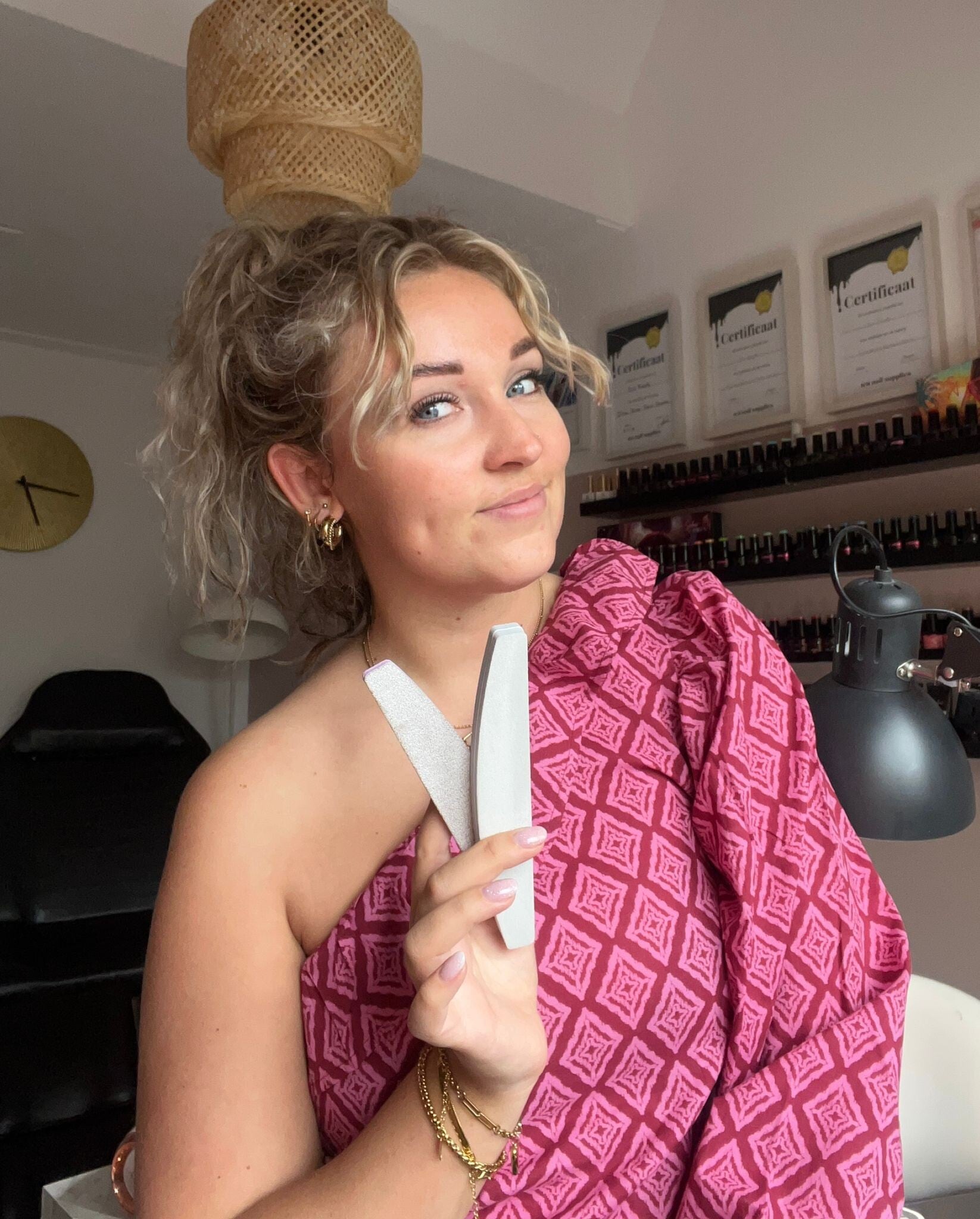Wat begon als een hobby is inmiddels uitgegroeid tot mijn fulltime passie en mijn droombaan. Ik kwam in aanraking met het nagelvak via een gellakje dat mijn zusje had meegenomen. Dat lakje moest onder een lamp worden uitgehard, en vanaf dat moment was ik verkocht. Ik raakte gefascineerd, kocht zelf spullen, oefende eindeloos en besloot uiteindelijk te investeren in een professionele opleiding. In december 2023 heb ik de stap gezet om fulltime voor mezelf te beginnen. En daar heb ik tot op het moment van vandaag geen seconde spijt van gehad.